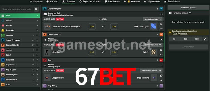 O 67bet oferece uma grande seleção de opções de apostas em e-sports com probabilidades competitivas